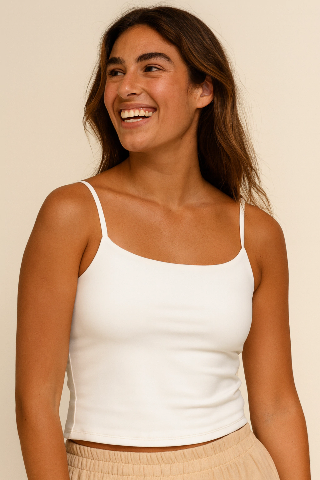 A regata em poliamida tem caimento justo e versátil, no elegante tom off white, ideal para diversas ocasiões.