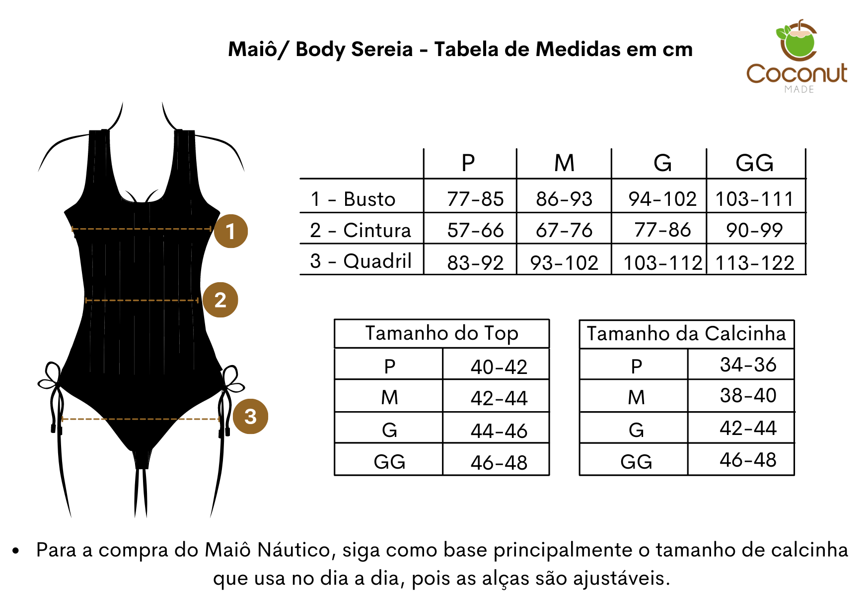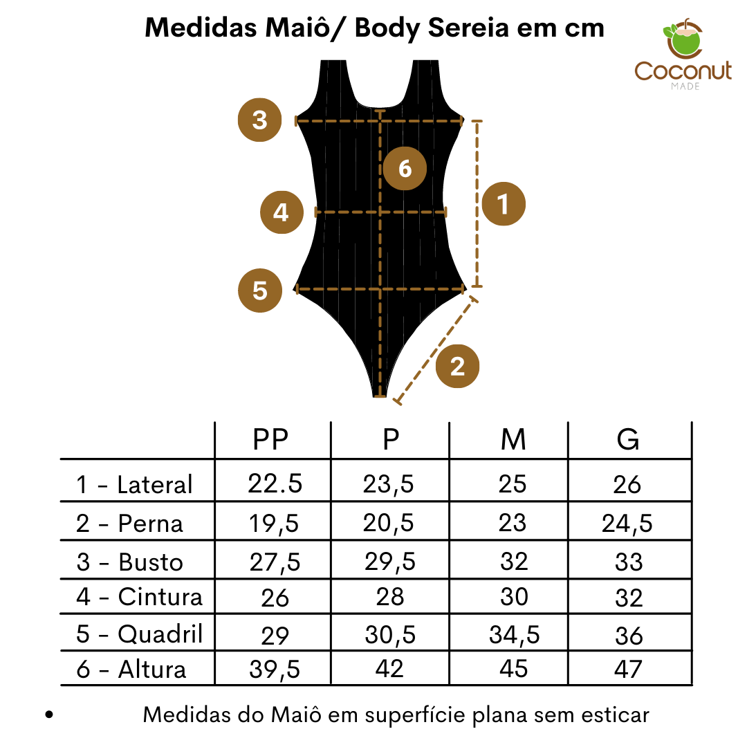 Podendo ser utilizado tanto como Maiô ou como Body, o modelo Sereia é inteiro liso, podendo ser combinado com diferentes estampas no dia a dia.